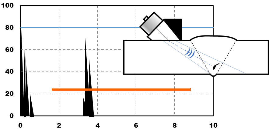Example: a blip on the A-scan that behaves like something you might care to take another look at, like a suspected slag inclusion on the hot pass.